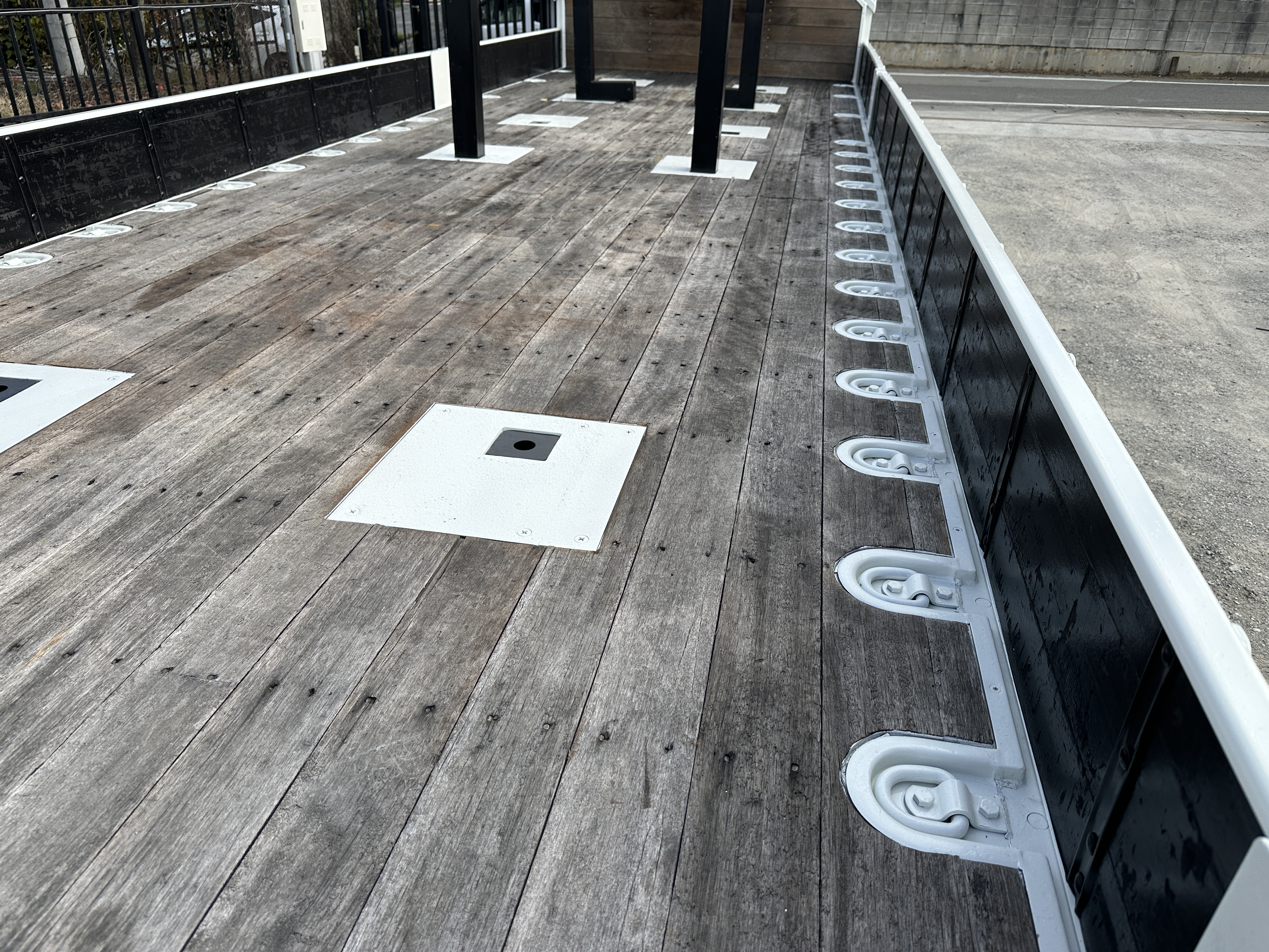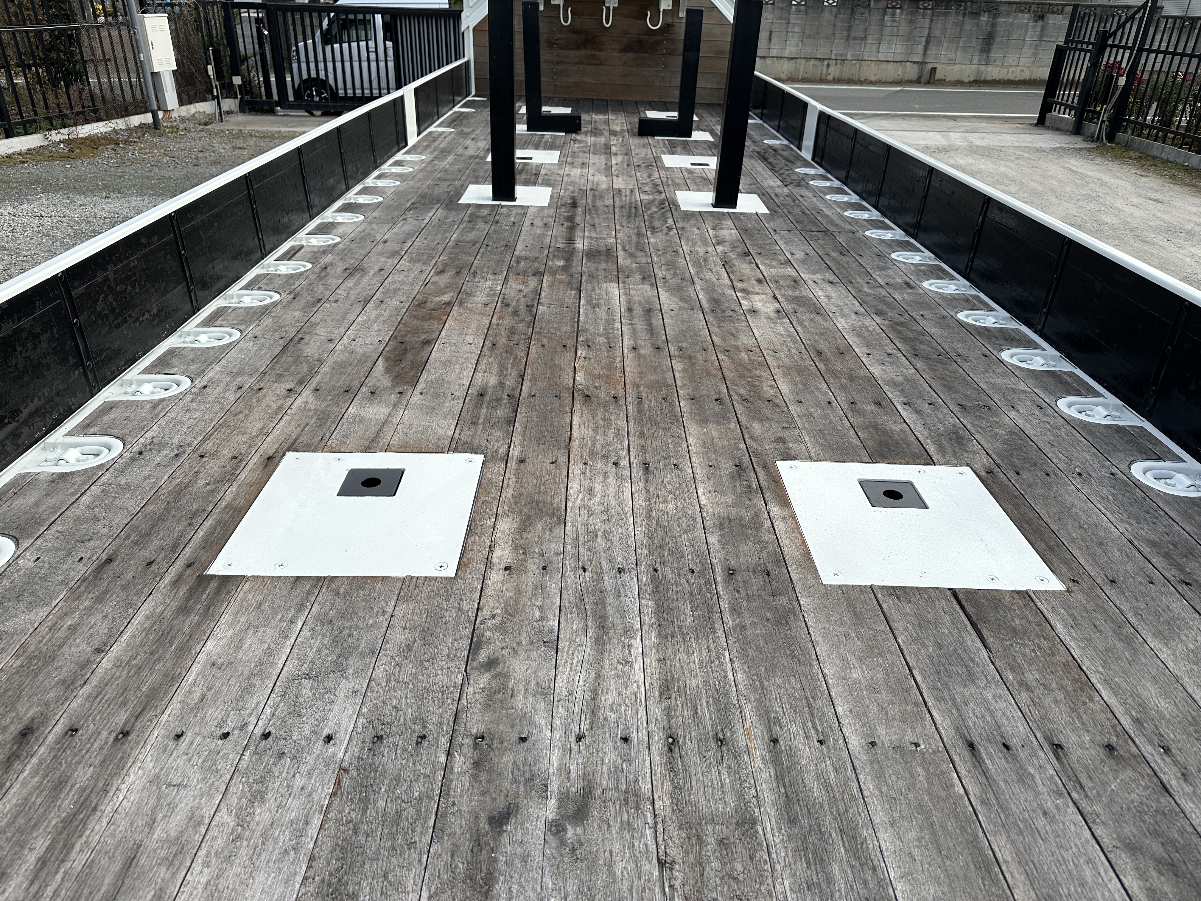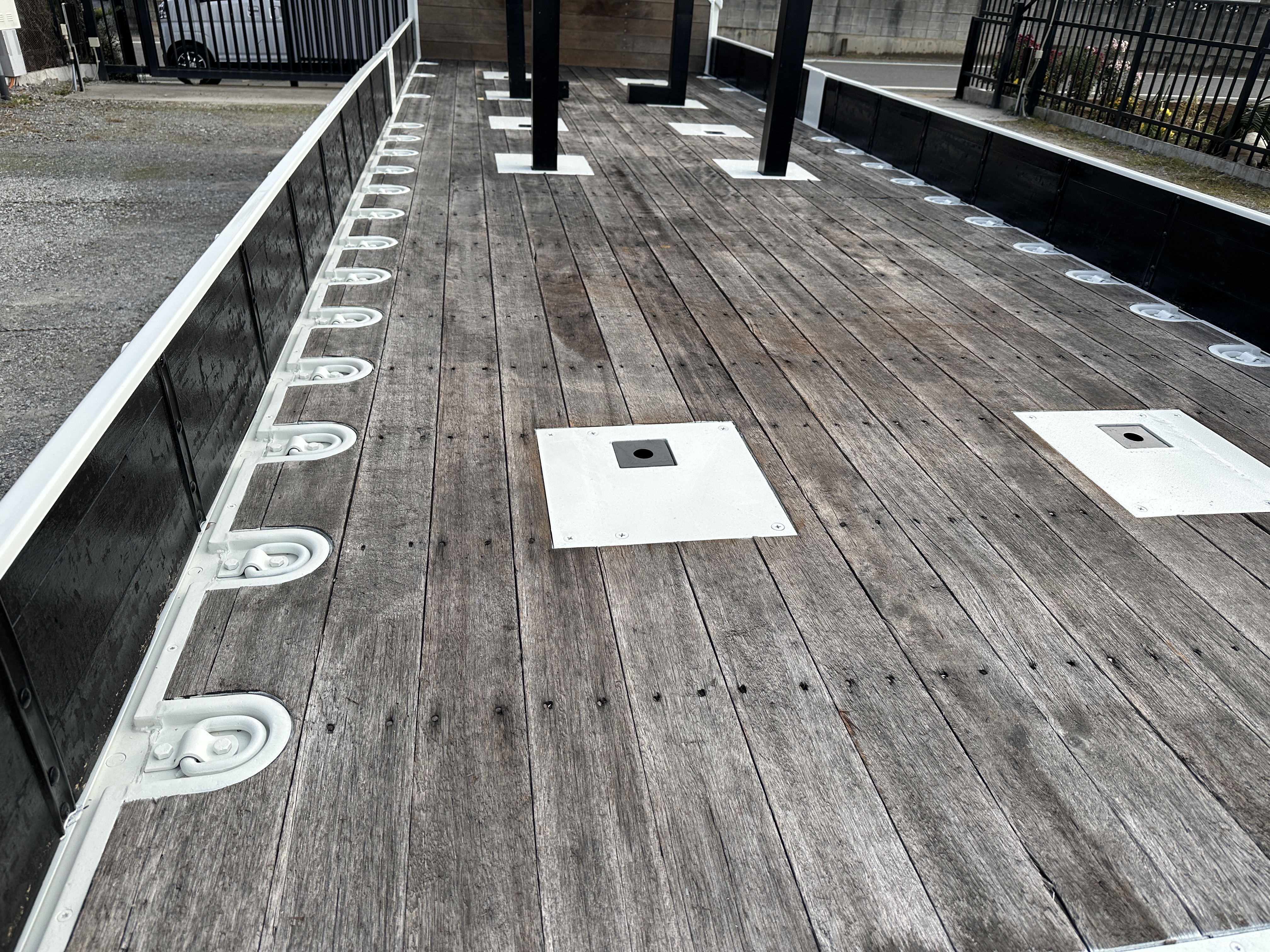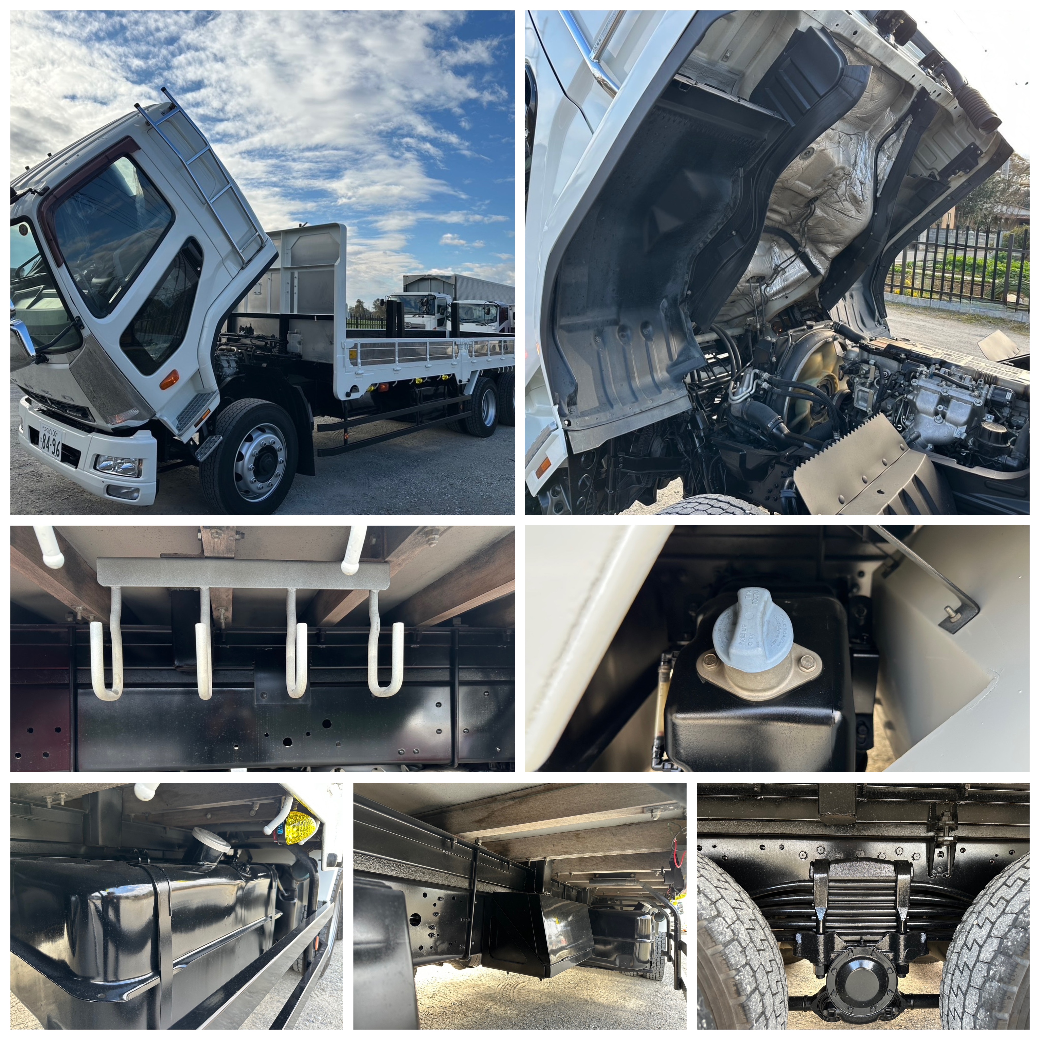 ボデイ内寸法 長さ750cm 幅236cm アオリ高さ30cm ホイールベース572cm 地上高110cm スタンション5対 床フック16対 AC/PS/PW/AIRBAG/ABS/6MT/ETC/2デフ バックカメラ |
